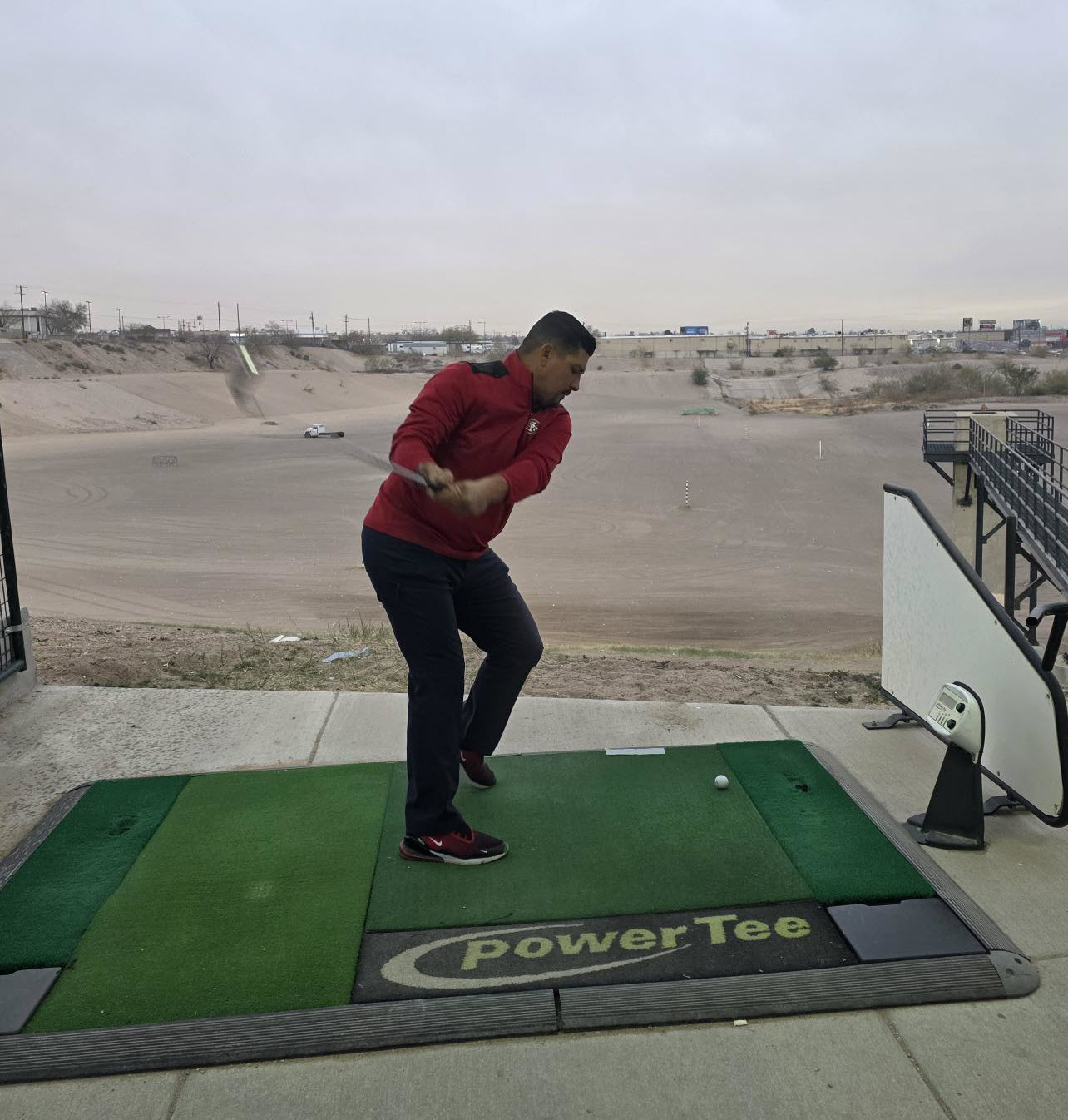 • You Hit the Ball: You strike a real golf ball on a hitting mat.